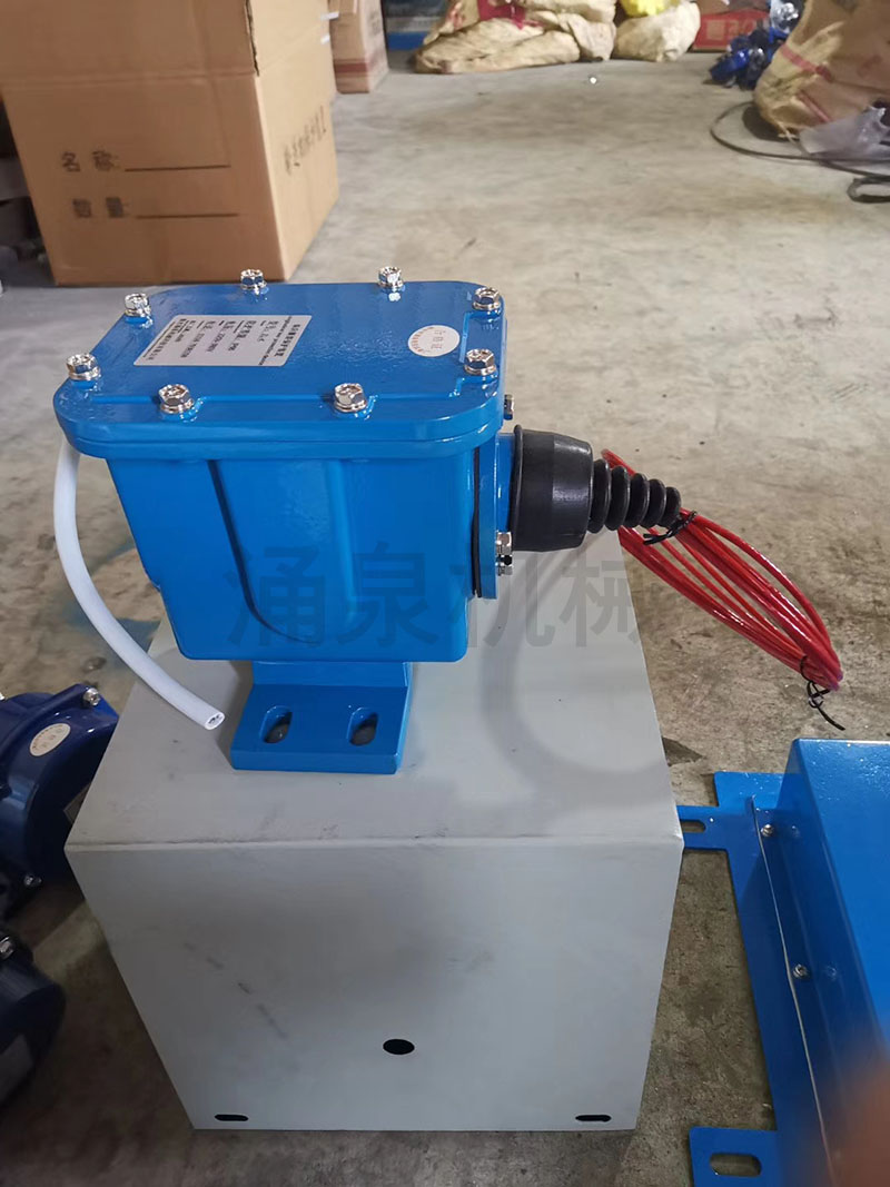 當膠帶運輸現場(chǎng)發(fā)生緊急事故時(shí),拉動(dòng)系在吊耳上的航空鋼絲繩,使機內的滑塊與開(kāi)關(guān)作用,發(fā)出停機信號。松開(kāi)鋼絲繩后,操作自鎖杠開(kāi)關(guān)自動(dòng)復位
