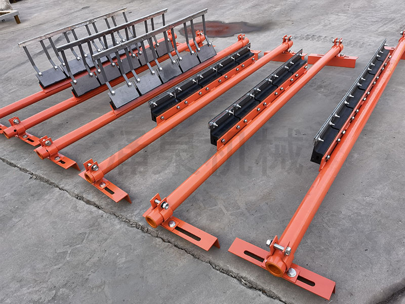 因此,為保證帶式輸送機正常運轉,必須將輸送帶上的附著(zhù)物清 掃干凈。如果清掃裝置良好,對托輥、輸送帶等的壽命都可以延長(cháng)。 由此可見(jiàn),清掃器在帶式輸送機上有著(zhù)不可忽視的作用。