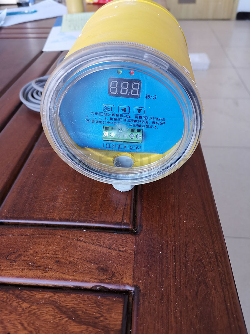 欠速打滑開(kāi)關(guān)是為了檢測皮帶機尾輪的旋轉速度,開(kāi)關(guān)與尾軸無(wú)接觸。當尾軸隨膠帶機運行旋轉時(shí)而帶動(dòng)感應片,感應片與檢測器發(fā)生的感應信號輸入到控制電路中去。經(jīng)放大,整形后進(jìn)行計數,其計數值與預置數比較,從而判斷膠帶的速度,既:在達到低于打滑速度時(shí)執行電路輸出相應的開(kāi)關(guān)信號,使主機停機。本開(kāi)關(guān)可調整速度值。